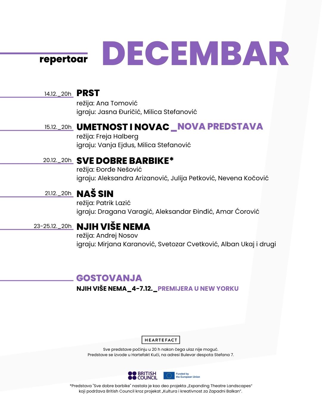 Objavljen je decembarski repertoar u Hartefakt Kući!