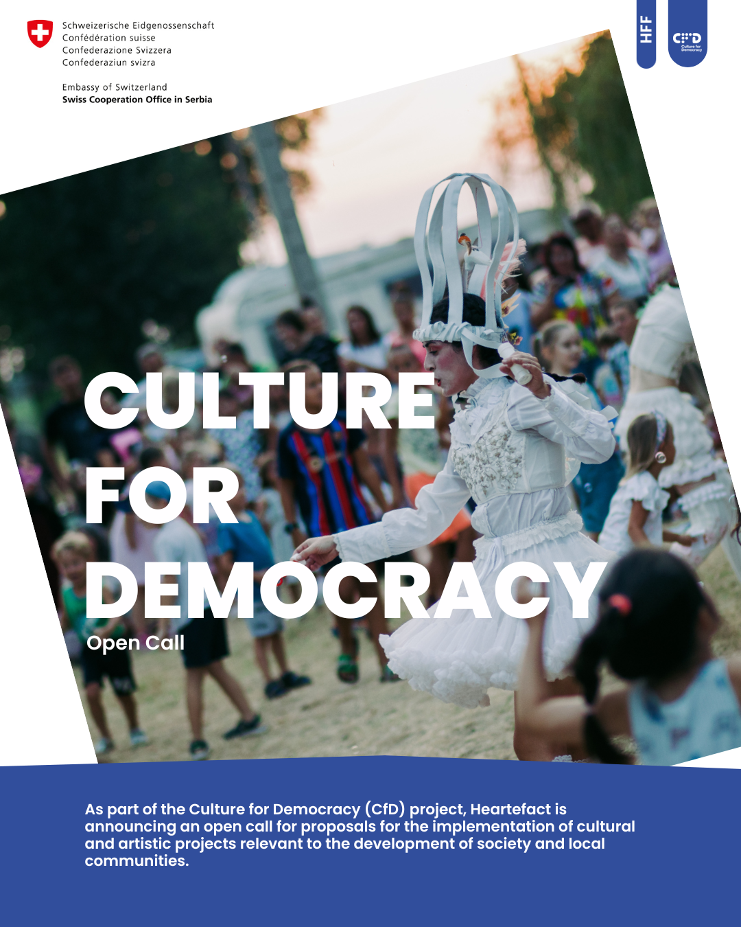 As part of the Culture for Democracy (CfD) project, Heartefact is announcing a call for proposals for the implementation of cultural and artistic projects that contribute to the development of society, local communities, and contemporary cultural-artistic practices of the independent sector in Serbia.